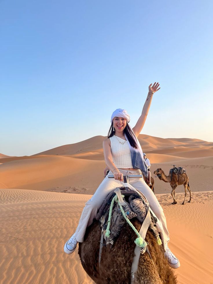Ride camels across the golden Erg Chebbi dunes and settle into your luxury desert camp at sunset.