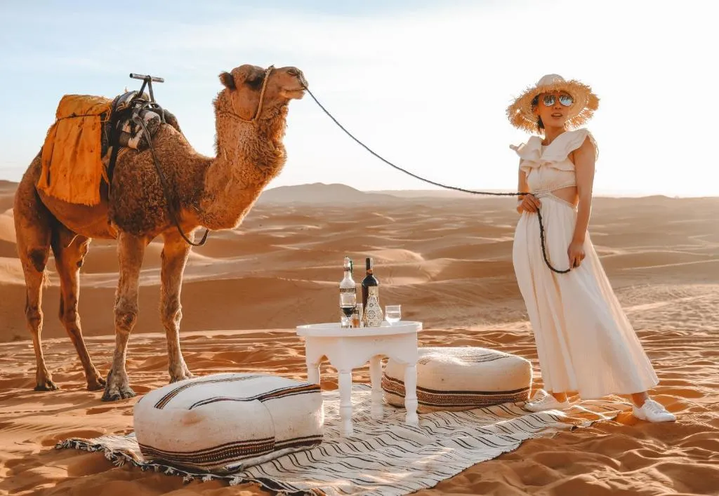Bring comfortable clothing, a hat, sunglasses, sunscreen, and warm layers for the evening since desert temperatures drop significantly at night. Comfortable shoes and a light jacket are also recommended for exploring the dunes or walking in Todra Gorges.